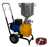 | WD69 | 氣動攪拌機,錐底不鏽鋼桶,高壓液料泵系統,高壓管,無氣噴槍,推車 | 高粘度的厚漿漆 | 69:1 | 0~414Bar | 3~6Bar | 0~20L/min | 約56Kg |